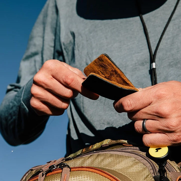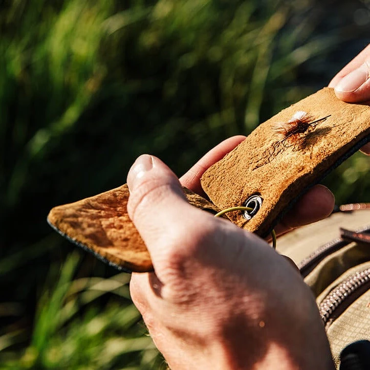 Amadou is primarily composed of a mushroom: “Fomes fomentarius”, and its primary purpose is taking soggy, water-logged, good-for-nothing dry flies and getting them ready to fish again. A simple squeeze between the two pads of this magical material sucks out water from a drowned fly, restoring its ability to float. Though it stands alone as a means of keeping flies floating, it is best viewed as a piece of the dry fly puzzle that includes some kind of dip or gel, and/or a powder floatant.
